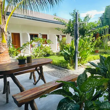Die Zimmer des traditionellen Hostels Maayong bieten einen Blick auf den Garten und verfügen über eine Sitzecke und eine Klimaanlage.